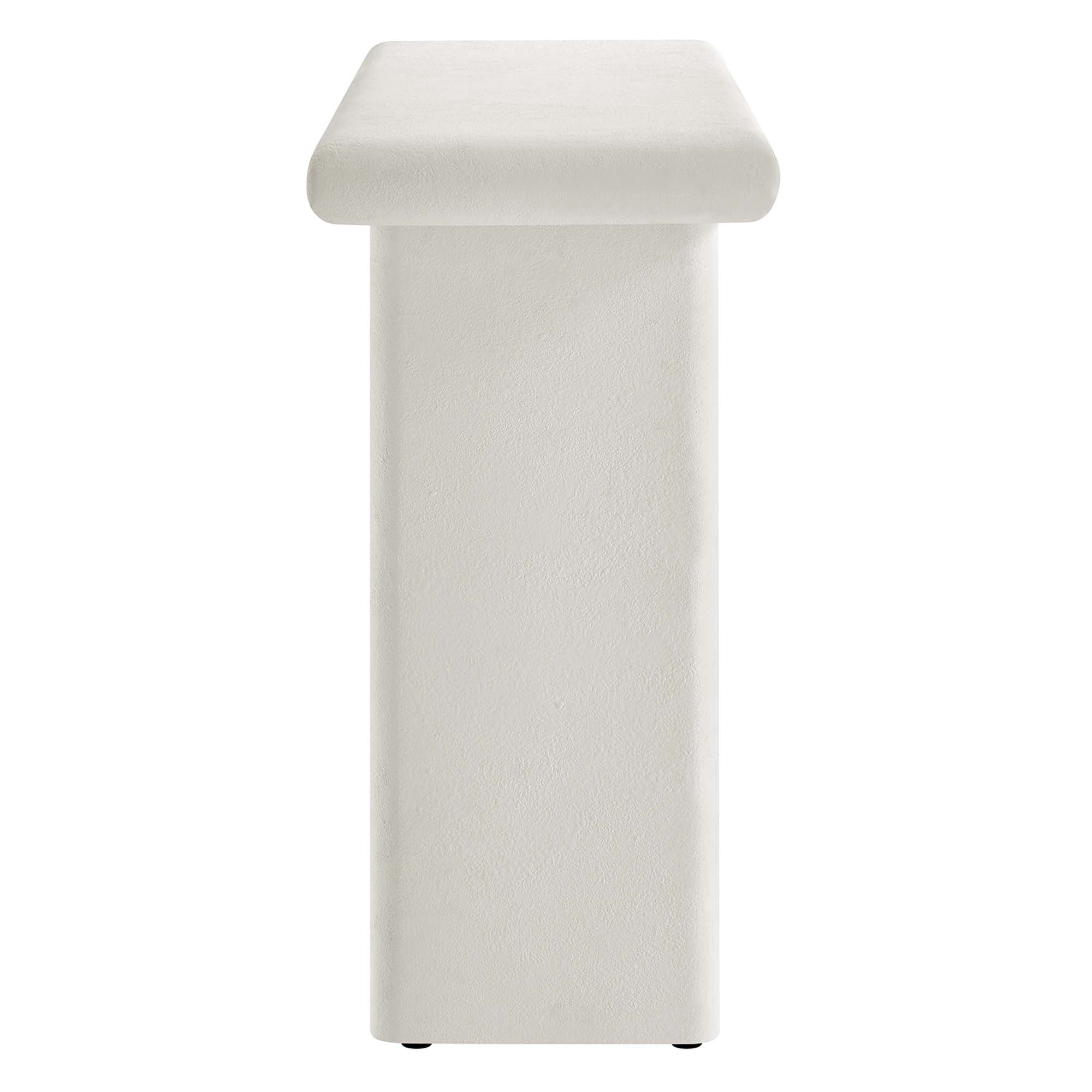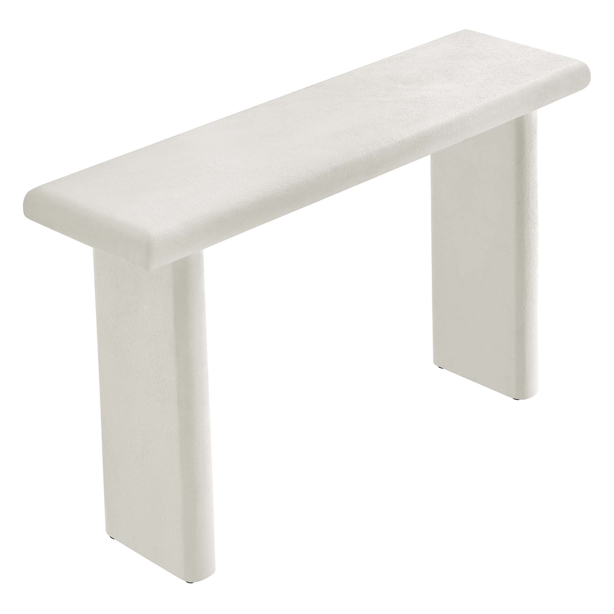Step beyond the usual with the stylish Relic Console Table. Crafted from MDF and mango wood and topped with a textured cement concrete finish, lasting durability complements the eye-catching design. With sleek bullnose edges, this console table boasts gentle contours, offering a sophisticated canvas to display cherished memories or curated decors. Perfect for modern minimalist design schemes, this accent table effortlessly elevates your living room, entryway, hallway, home office or lounge area. Equipped with leveling, non-marking feet. Assembly Required. Weight capacity: 287 lbs