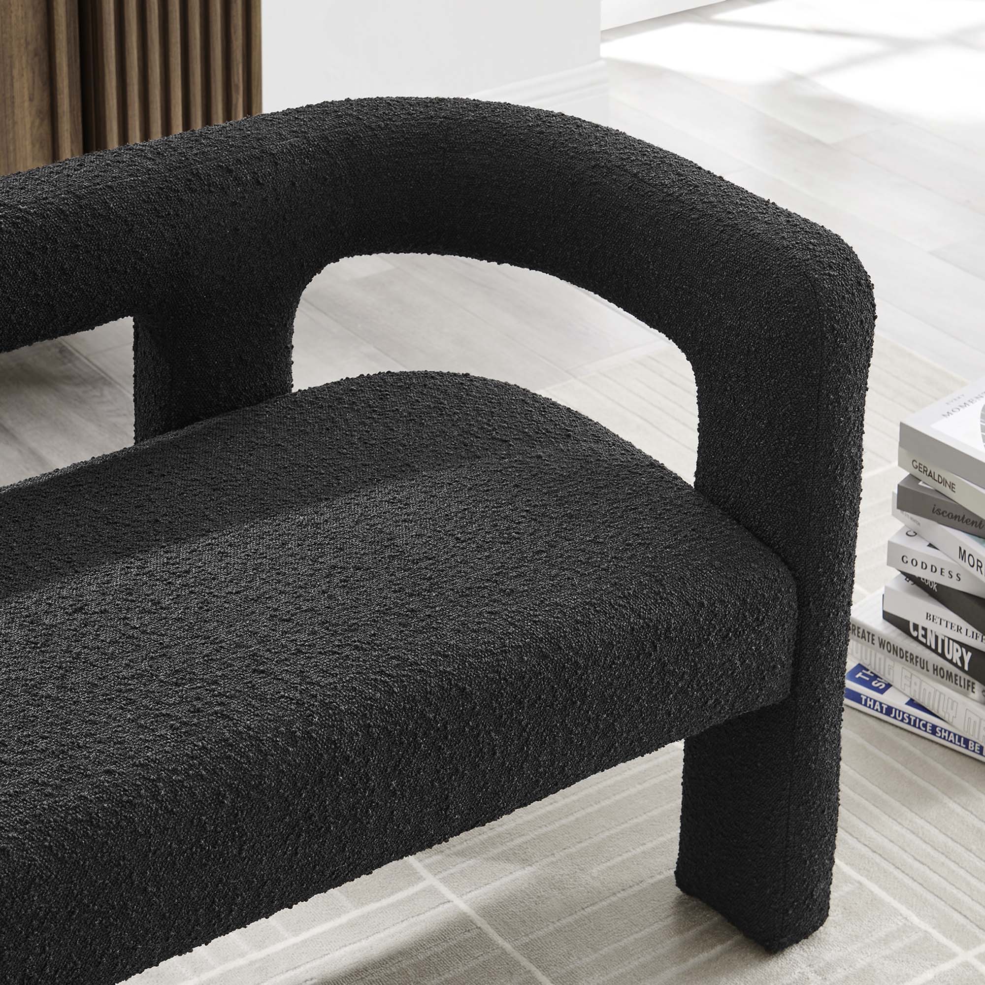 Experience unmatched comfort and sleek modernity with the Kayla Boucle Loveseat. Its progressive design and rounded open profile make a chic statement in any space. The boucle fabric adds a delightful touch with its charming nubby texture. Crafted with a sturdy wood frame, sinuous spring support, and dense foam padding, this two-seater sofa offers premium comfort and durability. Non-marking foot glides protect your floors. Elevate your space with the Kayla Boucle Loveseat—where modern luxury meets everyday elegance. Weight Capacity: 660 lbs.