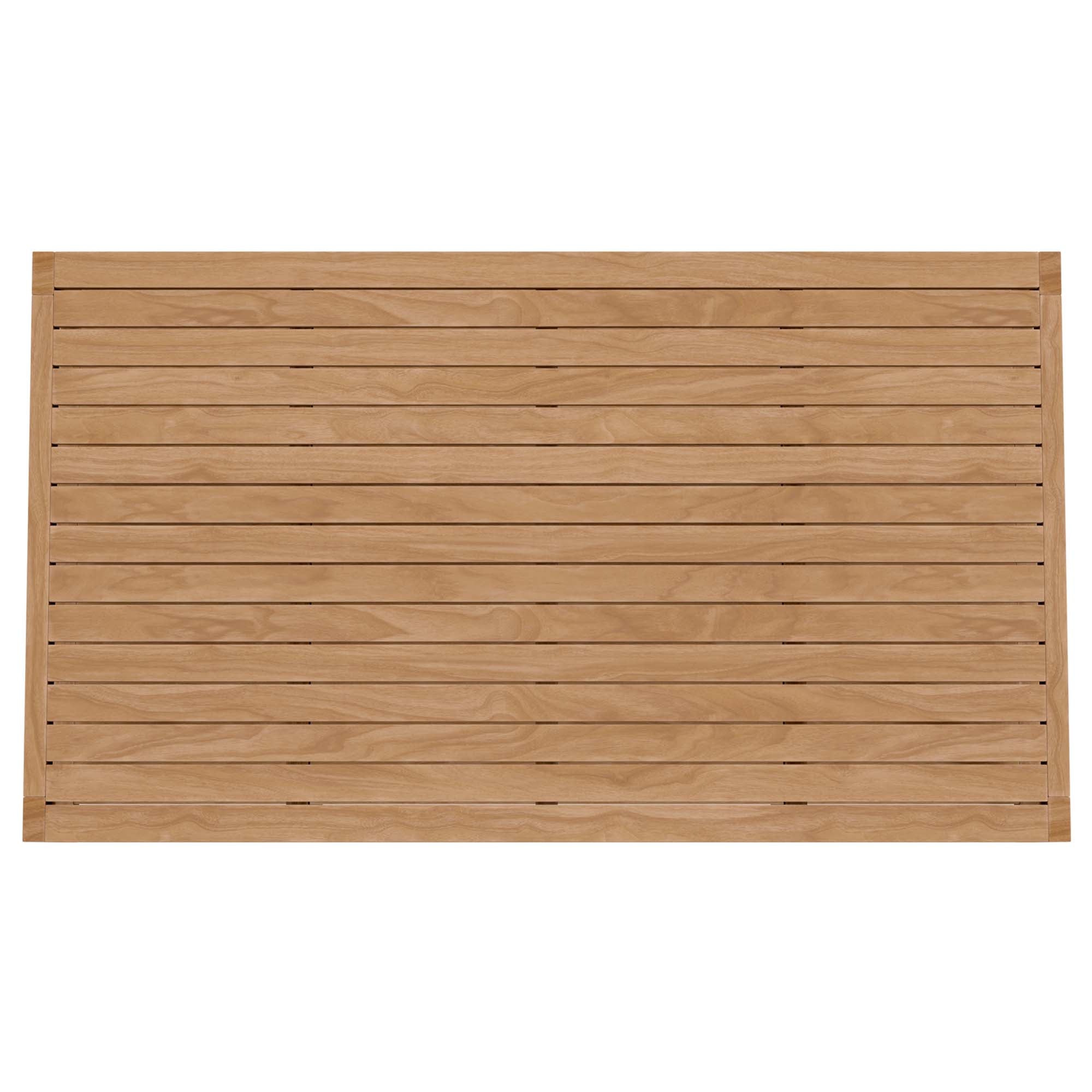 Enjoy warm weather and spirited conversation with the Carlsbad Outdoor Patio Coffee Table. A bold statement on the porch, in your backyard, or poolside, this patio accent table abounds in contemporary style with a slatted, clean-lined design. Designed for al fresco entertaining or relaxing by the pool, the Carlsbad Outdoor Patio Furniture Collection is crafted with durable Premium Grade A teak wood complete with a beautiful wood grain. Includes non-marking plastic foot glides. Coffee Table Weight Capacity: 600 lbs.
