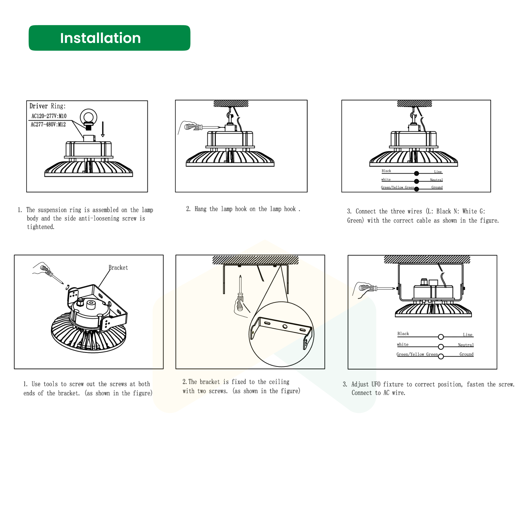 The 150W UFO LED High Bay Light is designed for high-performance industrial and commercial lighting, delivering 24,000 lumens of bright illumination with CCT changeable (4000K) for adaptable lighting needs. With its 0-10V dimmable feature, users can easily adjust brightness levels, making it an ideal solution for warehouses, factories, workshops, garages, gyms, supermarkets, airports, and exhibition halls.