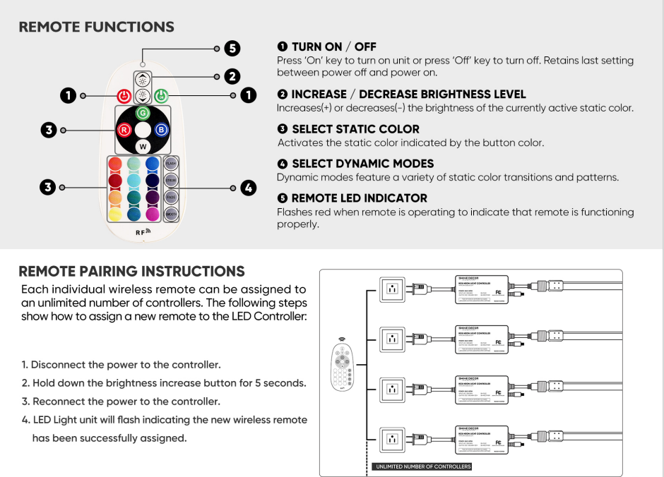 1x 16ft RGB neon rope light, 1x controller with power cord; 10 x aluminum mounting clip; 20 x screw; 1x User Manual, 1xremote.