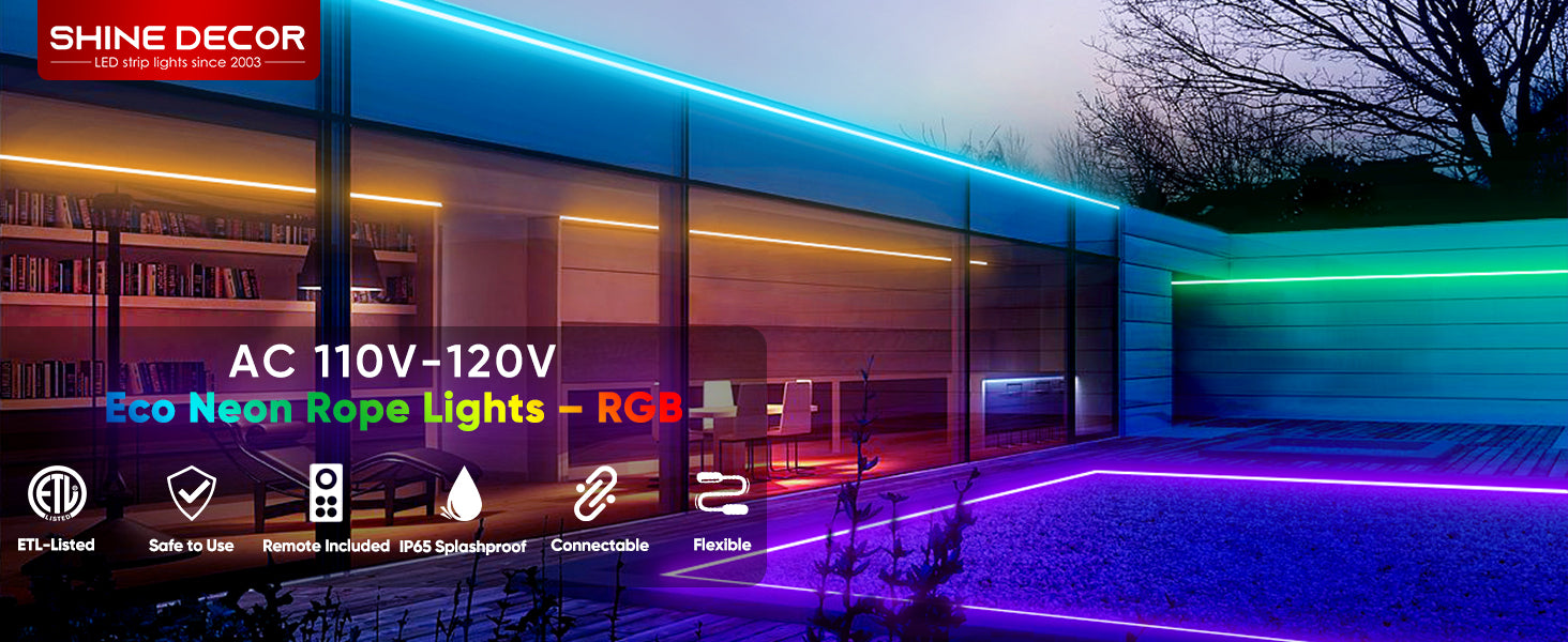 AC 110V-120V Connectable RGB neon rope light color changing led strip lights.