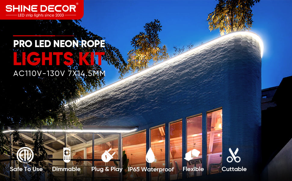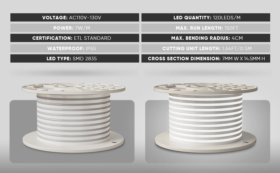 High Priced 120V led Rope Lights white 16.4FT-150FT. Dimmable LED neon rope light 6500K Cool White 120LEDs/M, ETL-Listed flexible neon led strip Waterproof, Custom Cuttable neon flex led strip.